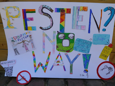 Samen hebben we beslist om een affiche te maken i.v.m. pesten. Iedereen van de klas was ermee eens dat pesten uit den boze is. De gevolgen van pesten zijn enorm!